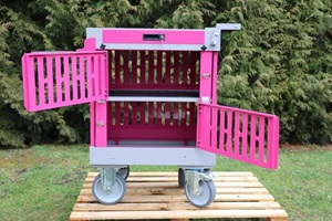 - jede Tür des Trolleys kann mittels eines handelsüblichen Vorhängeschlosses (nicht von uns erhältlich) gesichert werden- der gesamte Korpus des Trolleys besteht aus Aluminium und ist ausbruchssicher
